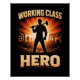 A powerful industrial-themed illustration portraying a defiant laborer standing strong against a blazing factory skyline, symbolizing strength, pride, and resilience.