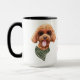 Here's the perfect office mug for the Poodle Dog owner! At the middle is a portrait of a Poodle wearing red sunglasses and a green scarf. The image is printed on two sides, and in the middle is red and black text that says "I work HARD so my POODLE has a BETTER life". Cute! *If you prefer to change or remove the text, you may do so.