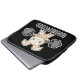 The sleeve is made of nice feeling material and seems very durable. I'm not sure how easy it'll be to clean, but the construction seems sound and the fabric is quick thick. I also like the double zipper. The printing is lovely and appears durable. The white on black contrast is nice, and the design very elegant.