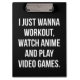 Workout, Watch Anime, Play Video Games - Funny Gym Clipboard