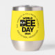 Make May 20th (World Bee Day) a memorable event with this commemorative stainless steel stemless wine tumbler, which features the 2024 theme "Bee Engaged in Pollinator-Friendly Agricultural Production" encircling the words World Bee Day 2024 with a stylised honeybee hovering over the letter B. Reverse shows identical design.