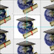 * Graduation Cap on top of the Earth, with Golden Diploma wrapped with a red ribbon.