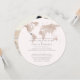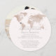World map travel theme Invitation for an at-home reception after a destination wedding or elopement with a tan, taupe, and barely there pink world map and classic fonts and a wedding photo on the back. If you are having a formal reception after a small wedding abroad or surprise beach wedding and your family wants to celebrate in your home town, it's a great chance to have fun with invitations or have a travel theme reception for the frequent traveller couple who met while travelling. Our round globe invitations fit into square envelopes and really stand out in the mail. Add a travel theme rsvp card to complete the set, check out the Paper Grape Destinations Zazzle Designer Store.