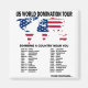 It's got the map of the world with a USA flag on it. Underneath it, you got the list of nations bombed by us with the date of the bombing.