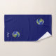 World globe and text on navy blue Bath Towel Set. Text can be personalised. Text only on one side!