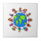 Cute cartoon whimsical illustration of a group of happy and diverse little stick figure boys and girls holding hands around the world. Easily customise and choose your own background colour or add text. Image available on various gifts and products.