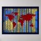 A graphic world map with vertical blue and golden stripes - a good and beautiful idea to the interior decor