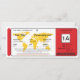 World Map Airline Boarding Pass ticket for your a birthday invitation. Featuring a world map in the background. Colours are Black, Red and Yellow like the German Flag. For enquiries about custom design changes by the independent designer please email paula@labellarue.com BEFORE you customise or place an order.