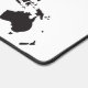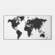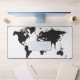 A simple black and white world map on a desk mat. Great item for the traveller and people that like modern and minimalist art. You can add your own element to it. Enough space to add where you've visited and other things you like.