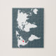 Navy blue and white world map. Personalise it with putting a red heart where your home is