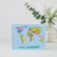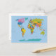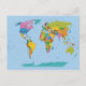 Map of the world with country names, city names, major cities, island names, sea names and graticules. Countries are depicted in bright colours.