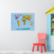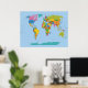 Map of the world with country names, city names, major cities, island names, sea names and graticules. Countries are depicted in bright colours.