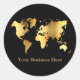 A graphic world map design by artist/designer Charmaine Paulson on a sticker. The text used here is Garamond Bold and the colour D0AA6C.