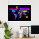 World Map made up of the names of each country. Virtually all countries are shown except for some of the very smaller ones.