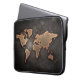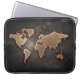 World map leather geographical brown laptop sleeve