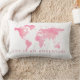 Pink Watercolor paint texture world map throw pillow with custom "Life is an Adventure" saying that can be personalized with any inspirational travel theme quote you want for a little girl's bedroom or baby nursery with a worldly international theme. Click 'customize further' to change the fonts, text placement, and background color to design your own map pillow.