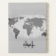 Designed with world map in cool black white grey background with custom text templates for name and initial!
