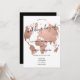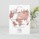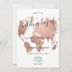 World map rose gold foil chic script wedding invitation