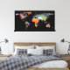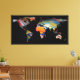 This is a world map silhouette with vintage abstract artwork encompassing the land masses.