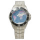Has heft and feel of expensive stainless steel quartz watches. Good band with safety catch. I removed links, which is easy because engraved arrows show direction to push the linking pins. As always by this seller, the image (a railroad logo) is a perfect reproduction of my emailed image, and is precisely spaced and aligned.