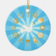 This elegant ornament features a radiant dove of peace at its centre, symbolising hope and unity, surrounded by the gold symbols of 12 world religions on a striking blue ray background. The sacred emblems of Bahá'í, Buddhism, Christianity, Confucianism, Hinduism, Islam, Jainism, Judaism, Native Spirituality (Medicine Wheel), Shinto, Sikhism, and Taoism encircle the dove, representing the global diversity of spiritual beliefs and the harmony that binds them (note: gold colour is not metallic). This ornament is a beautiful tribute to the shared values of peace, love, and understanding across faiths. Perfect for adding a thoughtful and symbolic touch to any holiday setting, it encourages reflection on the universal pursuit of harmony.