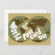 World Postcard Day is October 1. This is a special day to promote and celebrate the sending and collecting of postcards. This design features a vintage style globe map of two hemispheres in soft earth colours with a typographic design of the words in white.