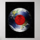 A photo of the Earth depicted as a vinyl record. Seven tracks are etched on the surface, one for each continent. A red label in the centre has text saying "Milky Way" "World Record" and "Eastern and Western Hemispheres property of the Earth. Made in the Solar System". Also includes a tracklist with the names of the 7 continents.