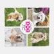 “World’s Best Dog Mum.” Every day is better with your best friend by your side. Fun, hot pink typography with paw print and grey script on a white circle overlay 4 custom photos of the honoured pet. Surprise your favourite dog mum and liven up her décor when you gift this simple, stylish and modern personalised pet photo collage keepsake fleece blanket. Personalise with pet’s name(s), Mum’s name or other copy. Available in 3 sizes: small (30”x40”), medium (50”x60”), and large (60”x80”). (ADDITIONAL PHOTO TIP: Pre-crop your photos into similar shapes and/or have the subjects in the middle BEFORE uploading.) Makes a great gift for Mother’s Day, birthday, Christmas, Valentine’s Day or any other special occasion. And it’s a great gift for yourself, as well! Just replace the 4 sample photos with ones of your own, type in the pet’s name(s), Mum’s name or other copy, and you can easily personalise this custom keepsake photo collage fleece blanket. Please message me with any questions or requests.