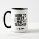 Celebrate your favourite educator with this "World’s Best Math Teacher" personalised mug — the perfect blend of wit, appreciation, and minimal elegance. This black-and-white design features clean modern serif text in bold black, surrounded by subtle math symbols like π, √, +, and – in soft grey line-art style. A scripted [Name] placeholder below adds a custom touch, ideal for gifting or treating yourself.