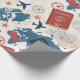 Classic travel-inspired pattern wrapping paper featuring passports, aeroplanes, travel stamps, compasses, and a light blue world map background. Ideal for travelers, aviation enthusiasts, adventure seekers, and anyone who loves wanderlust aesthetics.