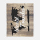 Get ready for adventure with this soft fleece blanket which has a black world map silhouette over a light wooden planks background and also the words "World Traveller" in white script.