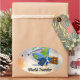 World Traveller, Design 2, tickets, passport, suitcase...ready to go! Colourful graphic design.