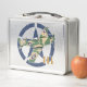 This is a standard metal lunchbox that appears to work just fine. We designed this box ourselves with an uploaded photo and custom text on the front and back. It looks absolutely beautiful except the front of the lunchbox is not centered like it shows in the photo. The print borders don't align with the inset flat part of the box where the preview photo online showed it perfectly centered in there. The back looks nice and centered though.