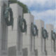 For Memorial Day or Veterans Day, here is a picture featuring one of the newest monuments in Washington DC, the World War II Memorial. This picture shows the memorial wreaths in front of a blue sky. Also featured as the widescreen wallpaper "World War II Memorial Wreaths I" from MLeWallpapers.com..