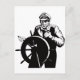 graphic design illustration of an World war two navy captain sailor at the helm done in retro style