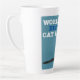 Tell the world you are the "World's Best Cat Dad" with this cute black cat in a necktie photographed on a blue background.