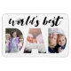 Modern Father's Day Photo Magnet. Design features cut out text ''DAD'' , 3 photos and happy father's day typography script. Personalize with photos and children's name.