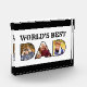 This photo collage photo block for Fathers Day features a three photo collage quote reading "World's Best Dad". Fill in the lettering with your favourite family photos for a unique gift. Designed by ©Susan Coffey.