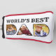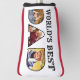 This modern personalised golf head cover features a three photo collage design of family pictures that reads "World's Best Dad". Fill in the lettering with your favourite family photos for a unique gift for your father. Designed by Susan Coffey.
