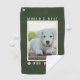 Fore! Let them know you're the 'World's Best Dog Dad' with this fun custom golf towel featuring white text and paw prints over a green background. Personalise it with your precious puppy dog's photo in the white and grey matte frame.