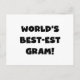 World's Best-est Gram Black Text Tshirts and GIfts Postcard