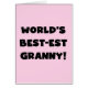 Black text World's Best-est Granny T-shirts, mugs, hoodies, cards, tote bags, magnets, keepsakes, and other world's best granny gear. Great gifts for great grandparents!