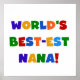 The world's best nana will love our World's Best-est Nana T-shirts, hoodies, mugs, cards, nana keepsakes, magnets, stickers, and more with a multicolored text design! Great gifts for great grandparents!
