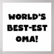 Black text and white text World's Best-est Oma T-shirts, mugs, hoodies, cards, tote bags, magnets, keepsakes, and other world's best oma gear. Great gifts for great grandparents!