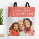 Custom 2-sided reversible tote bags personalised with your photos and text. Add a special photo with your mother or grandmother for Mother's Day, birthday or Christmas. Text reads "World's Best Grandma" or customise it with your own message. Back side has a chic stripe pattern or use the space for additional photos and text if needed. Use the design tools to add more photos, change the background colour and edit the text fonts and colours to create a unique one of a kind reusable tote bag for mum or grandma.