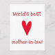 World's Best Mother-in-law! Red Heart Mother's Day Postcard
