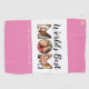 This cute personalised golf towel for mothers features a three photo collage word art quote bordered by pink that reads "World's Best Mum" with your signature in white accened by hearts. Fill in the lettering with your favourite family photos for a unique gift for Mother's Day. Designed by ©Susan Coffey.