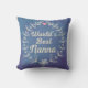 Lovely Nanna gift hand drawn laurel wreath with heart and bow on beautiful blue watercolor background throw pillow with Worlds Best Nanna Mother's Day quote. What a stunning way to say I love you to your Grandma.