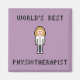 Illustration depicting a female physical therapist and the words: World's Best Physiotherapist.