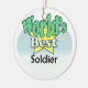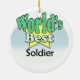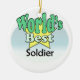 Leuke gift en verrassing voor wereld's best soldaat! Afgebeeld op een ornament met een ster. Cleur: large, geel, blue en wit.
